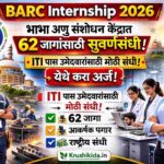 BARC Internship 2026: भाभा अणु संशोधन केंद्रात 62 जागांसाठी सुवर्णसंधी | ITI पास उमेदवारांसाठी मोठी संधी!